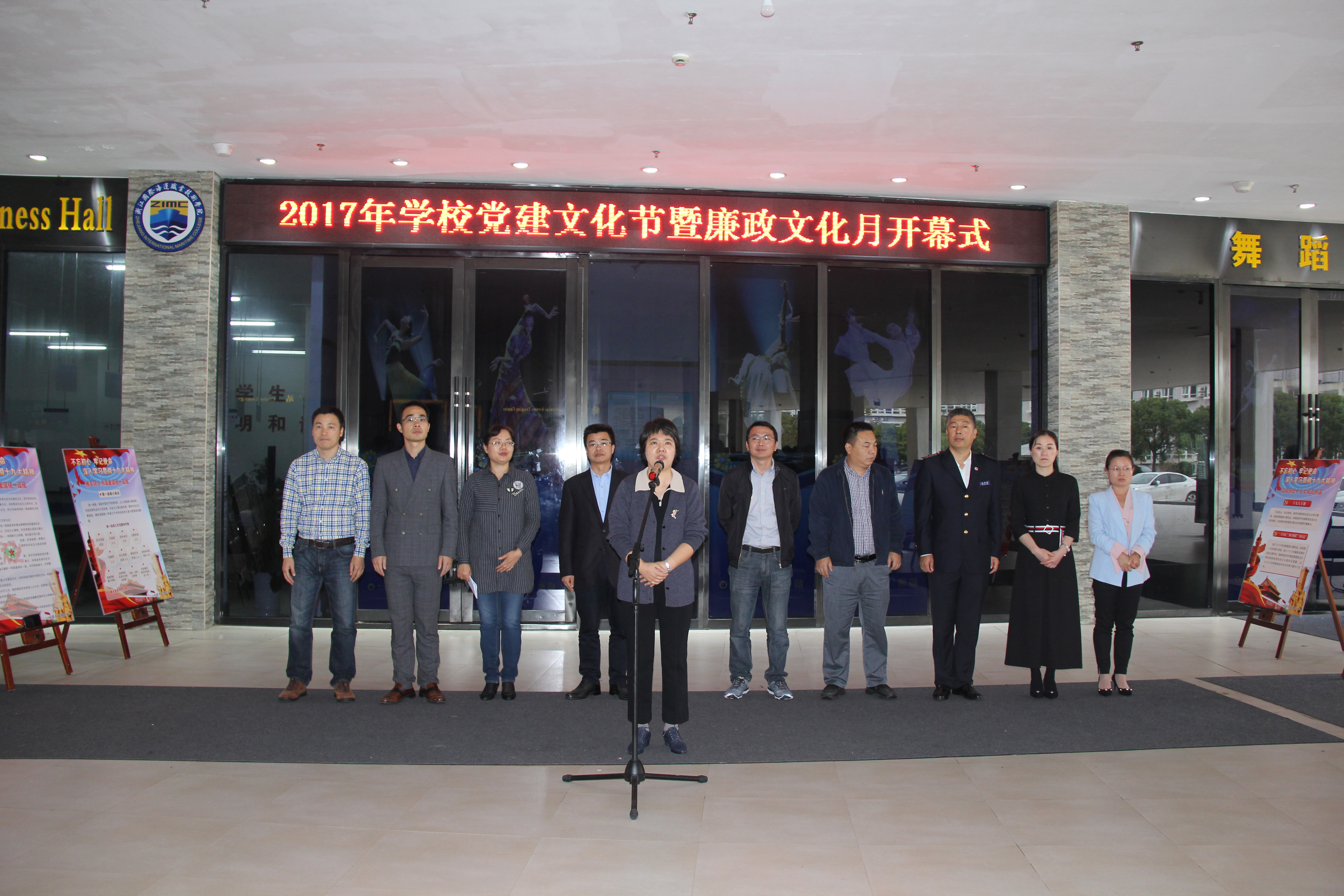 11月10日中午,2017年学校党建文化节暨廉政文化月开幕式在图书馆一楼大厅举行。活动领导小组成员、纪委委员、党风廉政建设监督员、学校各党政部门负责人及师生代表200余人参加,学校党委委员、纪委书记江爱芬到会并宣布2017年学校党建文化节暨廉政文化月开幕。