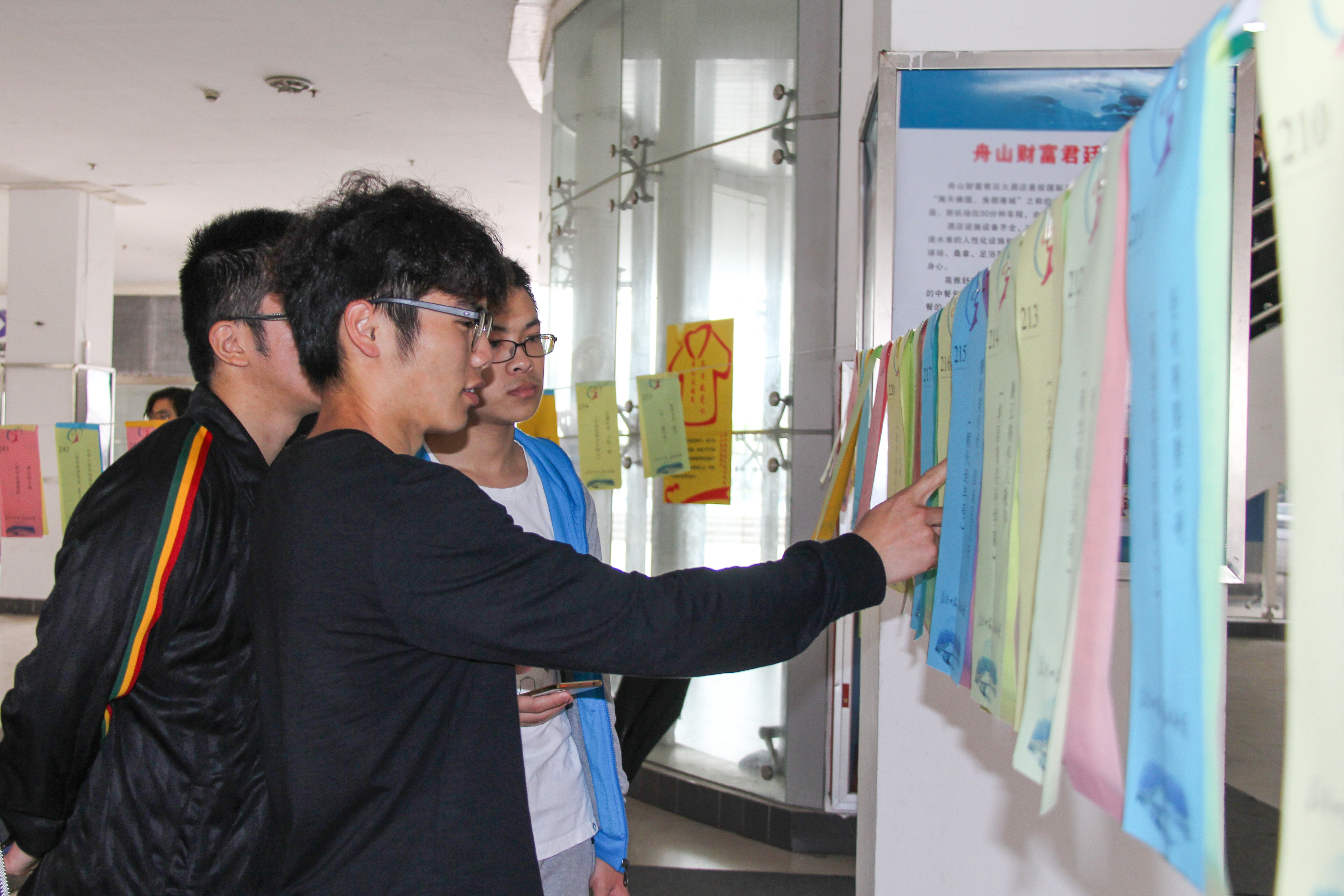 党建文化节暨廉政文化月开幕式后,师生们现场参观了“不忘初心 牢记使命”板报展览,并踊跃参加在图书馆、学生社区和岱山校区同时进行的党建廉政谜语竞猜活动。(宣传部)
