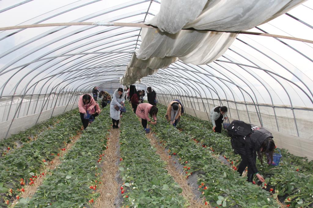 3月8日下午,校妇委会、女职委组织女教职工开展了春游活动。在参观完新建的舟山进出口商品城后,大家来到草莓采摘基地,三个一伙五个一群地开始采草莓。翠绿的叶子、鲜红欲滴的草莓、香甜的气息让大家心情格外舒畅,大棚里欢声笑语不断。活动让大家亲近了大自然,感受到了春天的气息,也为女教职工搭建了深入交流、团结互助的平台,增进了彼此间的友谊,并让大家充分体会到了学校的人文关怀。(金巧娟)