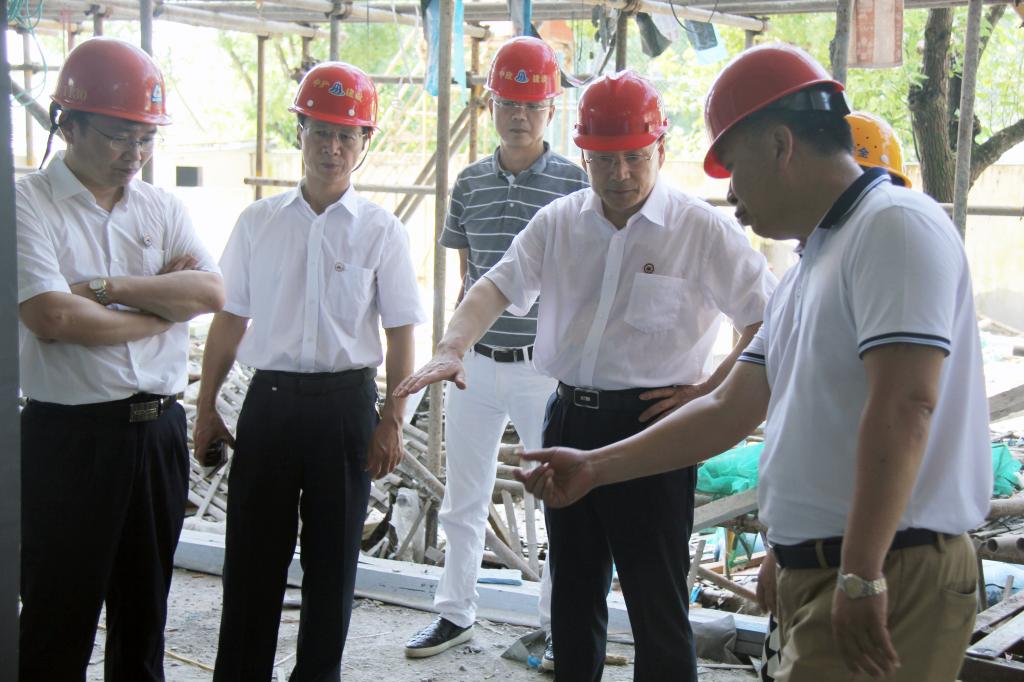 7月17日上午, 校党委书记陈松华、校长吴中平一行来到学校综合体育馆施工现场,视察工程建设情况。