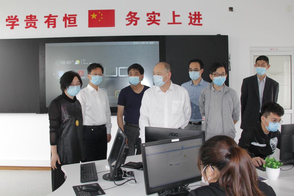 5月11日上午8点15分,根据学校2020年春季学期教学安排,阔别校园许久的同学们迎来了本学期的第一课。学校党委书记陈松华,党委副书记、校长吴中平,副校长李丽带领学校办公室、宣传部、教务处等职能部门人员深入教学一线,检查指导新学期教学工作运行情况。