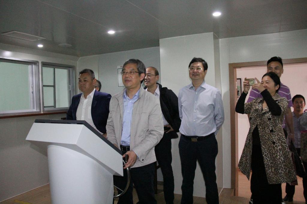 祝健、张伟宁一行先参观了校史馆、航海模拟器、游艇模拟器、港机模拟器、自动化生产线仿真实训室等场地,随后在行政楼103会议室开展了座谈。