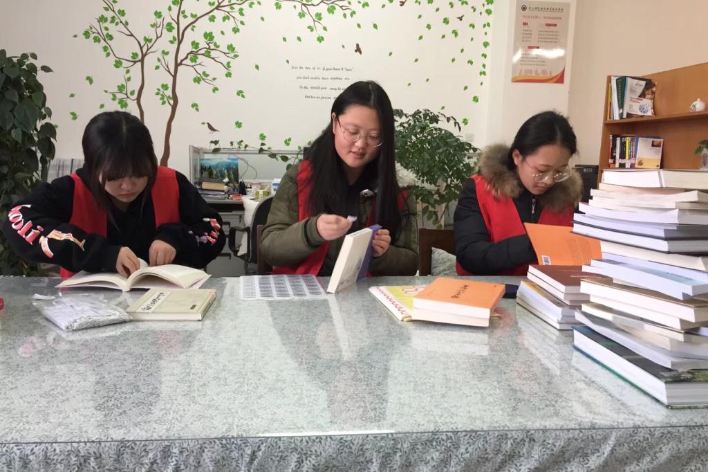 校图书馆拥有涵盖多种学科的藏书上万本,日常借书量大,图书馆工作人员的整理工作非常繁重。此外,很多书籍因借阅次数太多而出现破损。志愿者们在图书管理老师的指导和帮助下,完成了旧书修补、新书验收上架的图书维护工作,还学习了图书借阅手续办理和借阅者引导等一系列的日常管理工作。