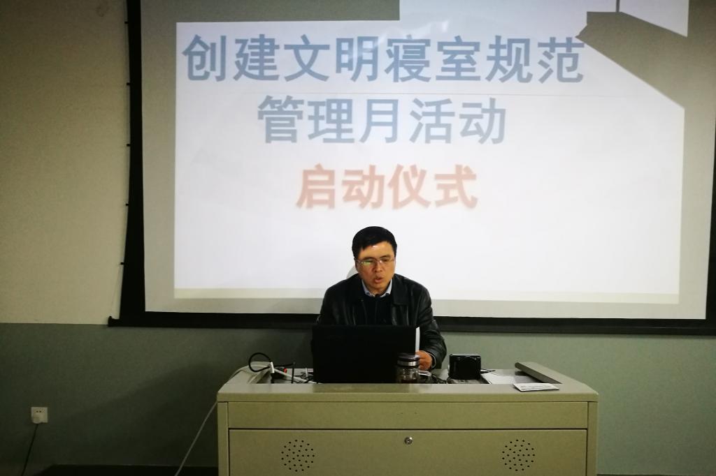 启动仪式上,石油化工学院党支部书记郑忠义作动员讲话,传达了学校分管领导来岱山检查指导工作时的叮嘱和关怀,要求每个同学每个寝室都要积极参与这次“创建文明寝室规范管理月”活动,通过创建,力争所有寝室面貌有明显改观,所有同学的生活环境更加舒适。同时,郑忠义书记也要求辅导员和宿管老师严格按照学校宿舍管理的相关规定,加强指导,加强督促,加强检查,确保活动取得实效。(石油化工学院)