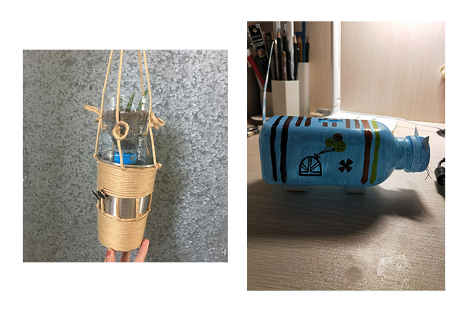 此次活动作品原材料全部来自生活中的废弃物品,同学们3-4人为一组,大家集思广益,脑洞大开,做出了创意满满的作品:有的用穿旧的牛仔裤重新剪裁做了一个崭新的帆布包,有的用矿泉水瓶做了花盆,有的用干树枝做了插花艺术品。经过前期评选,40余件手工作品入围决赛。决赛作品在教学楼展出,吸引了不少老师、同学们驻足观看。经过团委学生会认真评选,本次比赛评选出一等奖作品3件,二等奖作品5件,三等奖作品8件。