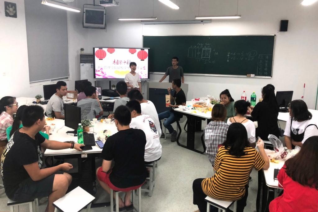 在传统的中秋佳节,为了使留校学生也能温馨过节,港口管理学院提前向留校学生发出了中秋茶话会邀请函,9月22日晚,学院团委书记余娜娜与留校的二十多位同学在4424教室共度中秋佳节。