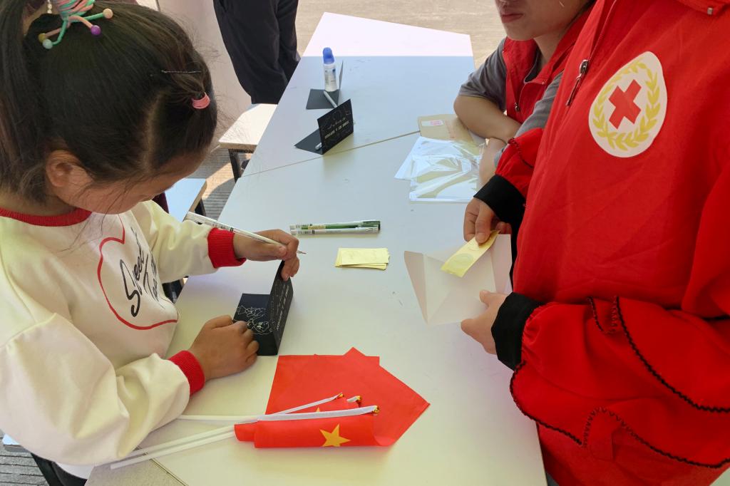 船舶工程学院红十字分会的志愿者们在校园开放日活动现场设置了感恩母亲,书写贺卡活动,吸引了众多市民参与,还不会写字的孩子们更是用绘画的方式表达对母亲的爱,外国的友人也在卡片上写下了对远方母亲的感恩之情。