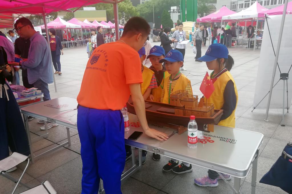 5月19日,以“科技强国 科普惠民”为主题的2019年舟山群岛新区科技活动周启幕活动在定海文化广场举行,学校科协、科研处携校大学生科协组团参加了活动。活动中,我校展示了船模、无人机、省大学生挑战杯参赛作品及航海科技新知等,发放了学术期刊、学校及招生宣传资料、省级科普基地介绍等。特别是学校参加浙江省大学生挑战杯参赛作品——改良挖泥船模型及介绍,由于专业性强、海洋特色鲜明,吸引了相关领导、媒体记者及广大市民的驻足观看与交流。活动现场,还组织了学习“知识产权保护”知识与竞答的有奖竞赛活动,市民们纷纷参与,认真答题,气氛活跃。这次活动既向市民科普航海科技知识,展示了我校航海科技成果,又宣传了学校办学特色与亮点。