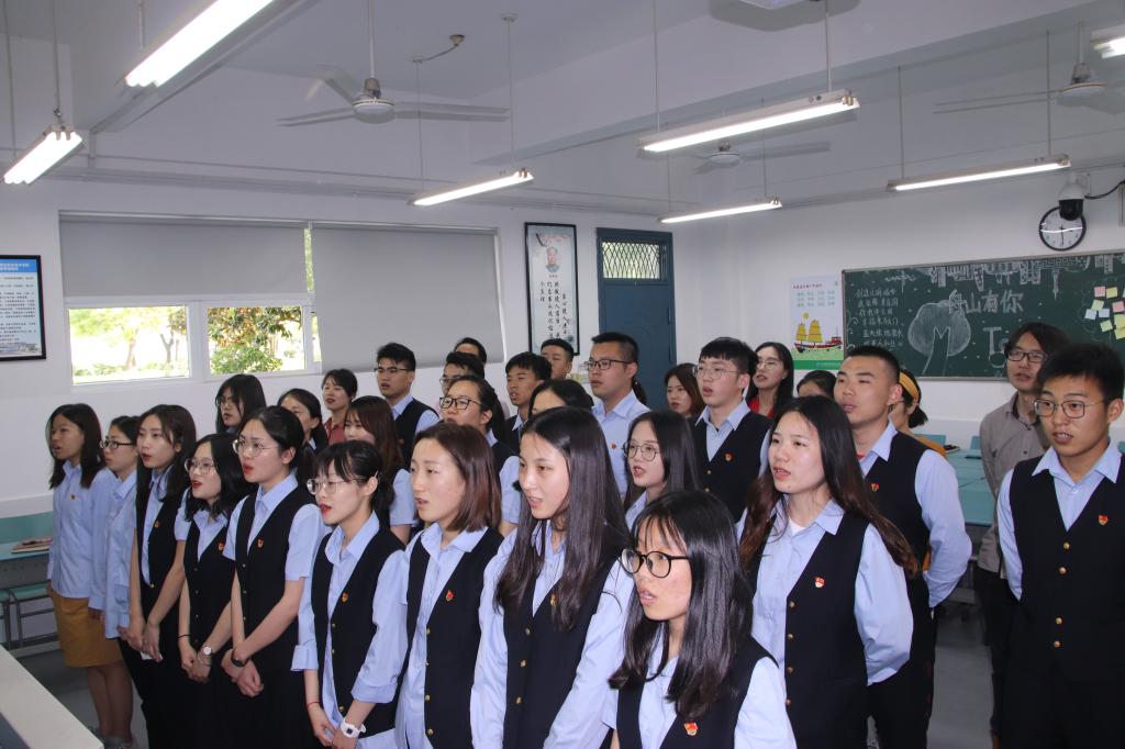 苏峰首先结合5月份的党日活动主题,围绕“严守职业底线,坚持廉洁从业”展开,对毕业生党员提出了三点要求:一是希望大家紧紧牢记法纪观、道德观、荣辱观,在工作和生活中不越线;二是要求大家严禁损公利己、严禁吃拿卡要、严禁滥用职权、严禁铺张浪费,做一名廉洁奉公的共产党员;三是希望大家讲正气、讲规矩、讲大局、讲学习、讲效率,毕业生党员无论身处何时何地,都要牢记自己是共产党员的光荣身份,增强党员意识,展示海运学子良好的精神风貌。接着,由港口管理学院支部教师党员为学生党员佩戴党徽,在支部书记余娜娜的带领下面向党旗宣誓。最后,支部全体成员合唱《我和我的祖国》,表白祖国。
