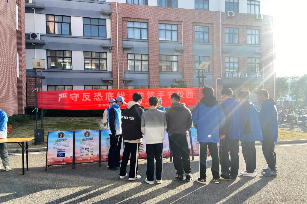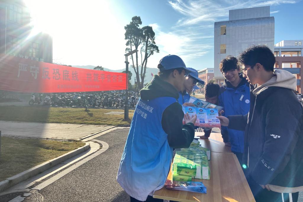为做好反恐宣传教育工作,提升广大师生员工特别是大学生群体识恐、防恐、反恐的意识和能力,12月14日,浙海职院“平安守护联盟”社团联合岱山县公安反恐怖大队举行了校园反恐宣传活动。