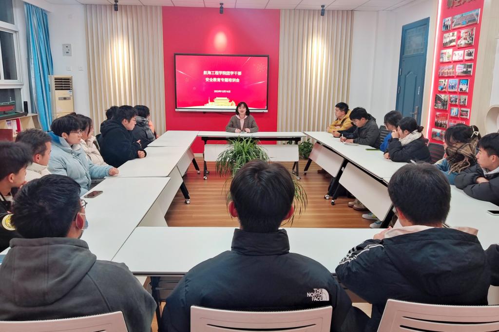 为进一步加强校园安全教育,强化学生安全意识,用好学生干部这个重要抓手,12月16日,航海工程学院组织召开团学干部安全教育专题培训会。本次会议由学院分团委书记周科玮主持,学院团委、学生会、准军事化部门负责人参加。