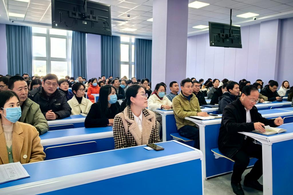 为进一步提升学校心理健康教育水平,加强医校合作,12月27日下午,学校心理健康教育中心邀请舟山第二医院心身医学科袁松主任来校讲授“校园心理危机识别与干预”专题讲座。校党委副书记孔志光、学工部部长芮明珠、学校专兼职心理健康教育教师、全体思想政治辅导员、全体班主任、全体二级学院副书记参加了此次讲座。