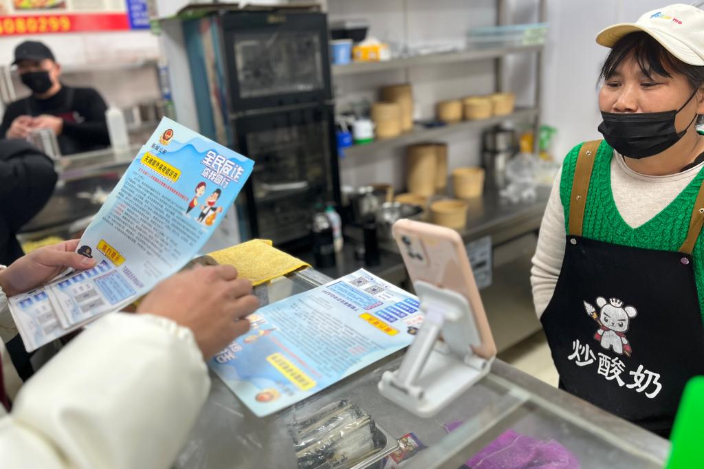 同学们边发传单边进行宣传,告诉大家“管好钱袋子、警惕小骗子”,“龙年行好运、不是撞大运”。生动形象,深入人心,取得良好效果。
