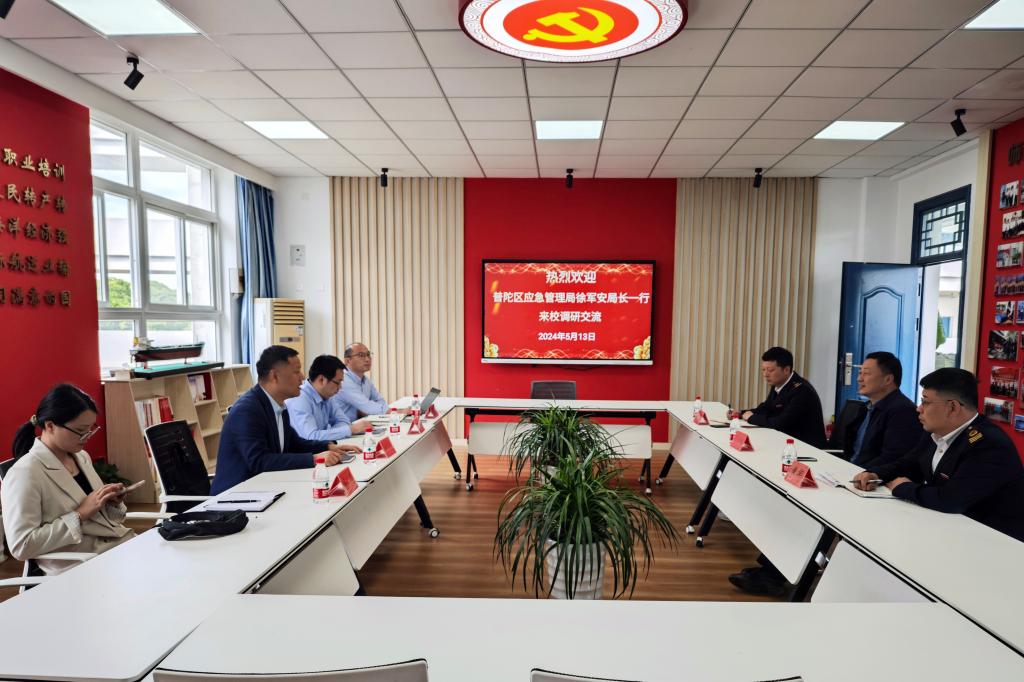 5月13日下午,普陀区应急管理局徐军安局长一行4人来我校进行调研交流。校党委委员、副校长夏志刚,航海工程学院副院长黄华、实训管理教师刘霜冬参加交流会。