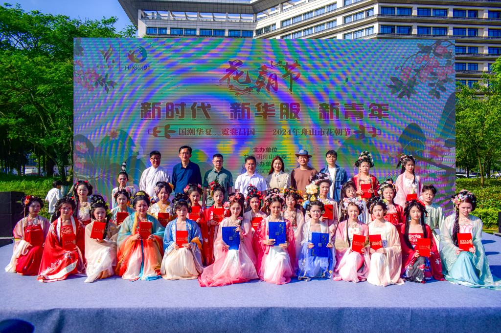 5月18日下午,舟山市的樱花公园内,花香四溢,人头攒动。由舟山市团市委主办、舟山市汉文化协会承办的2024年舟山市花朝节“花神”才艺比赛正在上演,吸引了众多市民和游客的目光。
