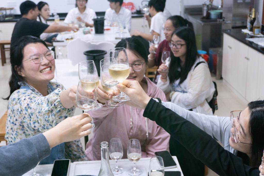 作为此次活动的侍酒师,郑小燕同学表示,本次品鉴的酒款有的带有浓浓的苹果、柑橘、梨的果香味,有的带有白花、玫瑰花、桂花香味,还有芬芳植物香(肉桂、丁香)。第一次参加活动的王同学觉得冰镇后的起泡酒喝起来很快乐,酒精度数不高,果香味十足,可以驱走夏天的闷热感。