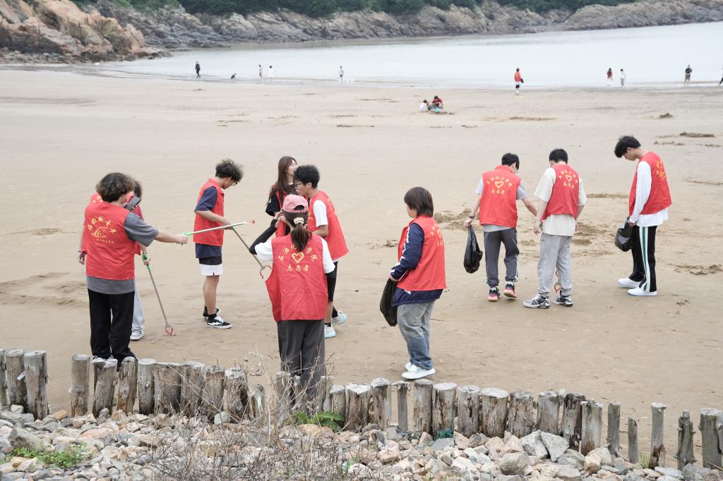 在初夏的微风中,四十余名同学从岱山海岬公园骑行驿站出发,沿着海岸线骑行5公里前往沙滩营地。大家带上工具来到海滩参加净滩行动。烟蒂、玻璃碎片、瓶盖、渔网、塑料袋……大家认真搜寻,发现了不少在沙滩上或被浅埋于细沙之下的垃圾,同学们沿着海岸线清理随潮水涨落滞留在沙滩上的垃圾,一个个忙碌的红色身影成为海边一道亮丽的风景线。大家漫步在沙滩之上,感受海风的吹拂,享受大自然的宁静与清新,最后一起骑行返程,欢快的歌声萦绕着驿站。