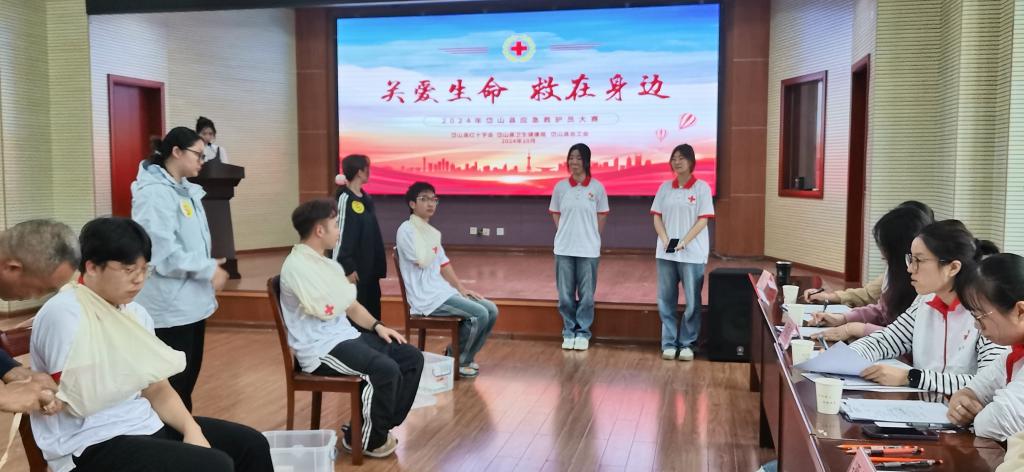 10月下旬,岱山县红十字会联合县总工会、县卫生健康局举办“关爱生命 救在身边”应急救护员技能大赛。来自全县7个乡镇14支队伍、42位应急救护员同场竞技,比拼AED心肺复苏、出血包扎、骨折固定三项技能。