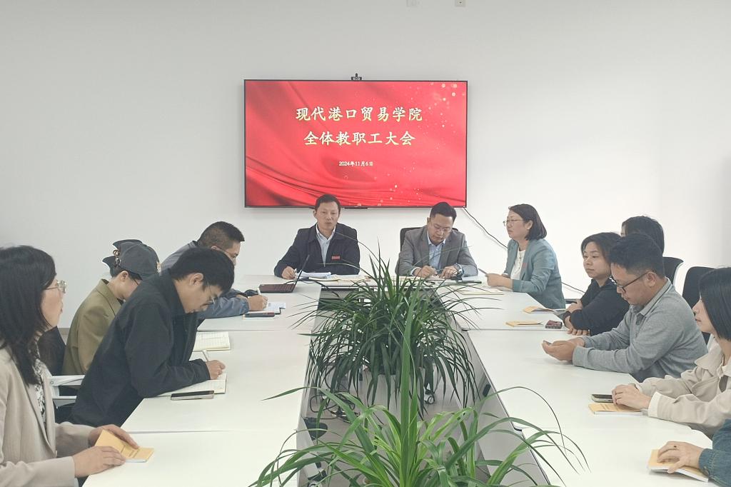 11月6日,现代港口贸易学院全体教职工大会暨质量管理体系宣贯专题会在4304会议室举行,会议由院长王贵斌主持,本次会议旨在增强教职工质量管理意识,充分发挥体系在教育教学和培训工作中的作用。