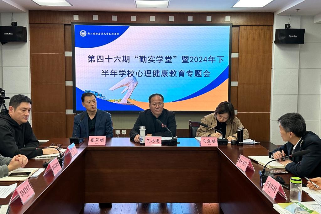 为进一步了解在校生的心理健康状况,准确把握和研判学生心理问题,进一步提高学生心理健康教育工作水平,11月21日,学工部举办了第四十六期“勤实学堂”暨2024年下半年学校心理健康教育专题会。校党委副书记孔志光、学生处相关负责人、各二级学院副书记、学校专兼职心理健康教育教师、全体辅导员及舟山二院特邀医生共同参会。