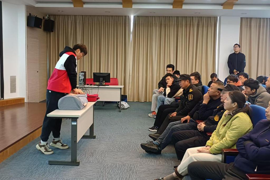 12月1日上午,经多方协调,精心筹划,指导老师带头,后勤产业处联合安全保卫部组织全体平安海运联盟队员参加第十四期CPR与AED急救培训。