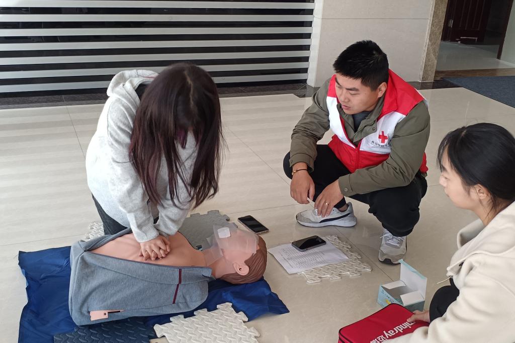 本次培训由校红十字应急救护师资李沛沛担任主讲,他对心肺复苏术+AED使用急救技能理论进行了深入浅出的讲解,重点讲解及示范如何判断呼吸、呼救、按压部位、按压手法以及AED使用,同学们纷纷拍照重点事项以便课后观看复习。实操部分分5组进行操作,每位师资严要求、高标准对待每位学员,及时纠正参训学员的操作错误,确保每位参训人员都能掌握正确的急救方法,最后45位学员取得由红十字会颁发的CPR+AED证书。