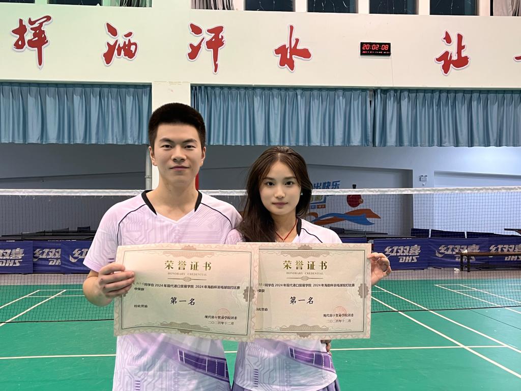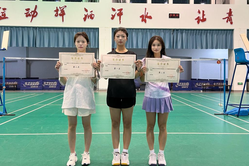 经过激烈角逐,2024级大数据技术2班罗子昊同学以绝对优势夺得了羽毛球男单选拔赛的冠军。李欣燃同学夺得了羽毛球女单选拔赛的冠军。李金涛、陈思琪同学夺得了羽毛球双打选拔赛的冠军。