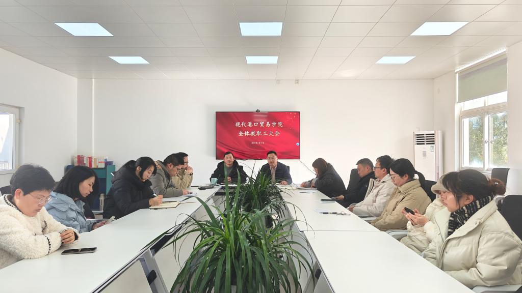 1月15日,现代港口贸易学院在海德楼4304党员活动室举行了期末教职工大会。大会由学院党总支书记李刚主持,全体教职工参加会议。