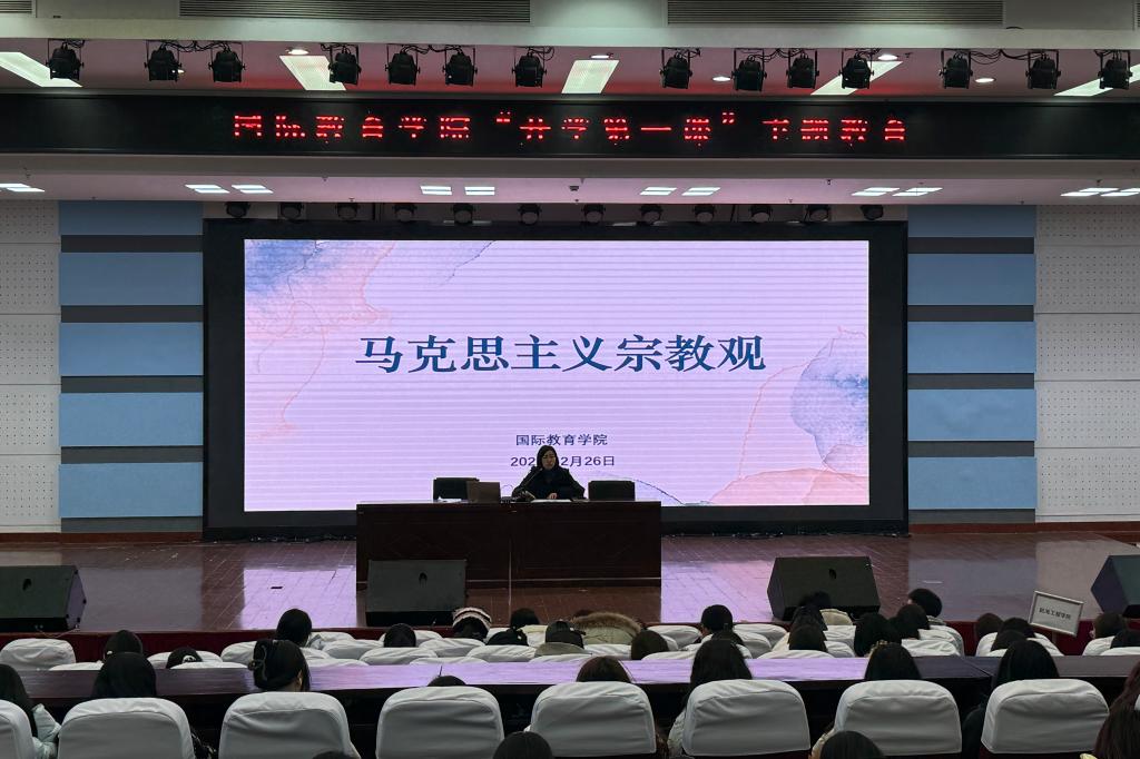 会上,学院党总支书记金洁结合实际案例,向师生们讲解新时代宗教工作,引导学生正确树立马克思主义宗教观,远离非法宗教活动。