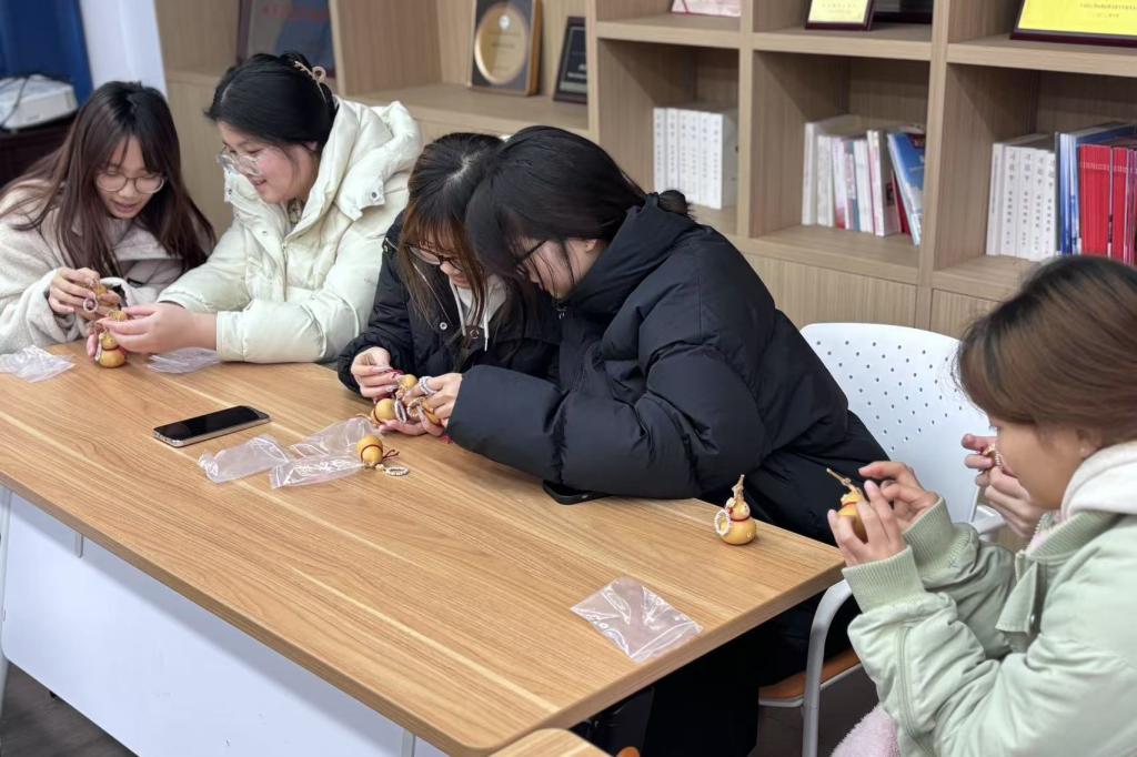 在三八妇女节来临之际,海洋旅游学院学生会组织院内学生开展了一场别开生面的手工制作葫芦挂件活动。
