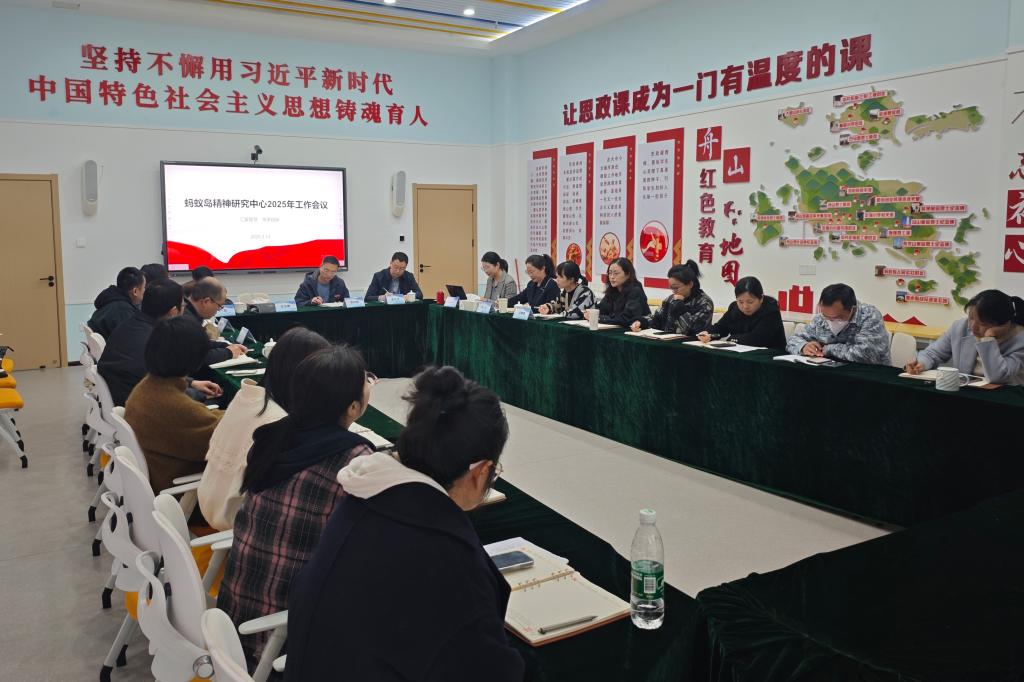 为深入贯彻党的二十大精神,推动蚂蚁岛精神在新时代的传承与创新,助力舟山在现代海洋城市建设中实现高质量发展,3月12日,2025年蚂蚁岛精神研究中心工作会议在学校图书馆思政智慧教室顺利召开。普陀区社科联副主席张平华、蚂蚁岛管委会副主任王凯、蚂蚁岛管委会宣传干事傅楠受邀出席会议,校党委委员、副校长夏志刚,科研与合作处处长何琪、校团委副书记余娜娜、市级文化特派员吴蓓出席会议,会议由蚂蚁岛精神研究中心副主任徐英主持。