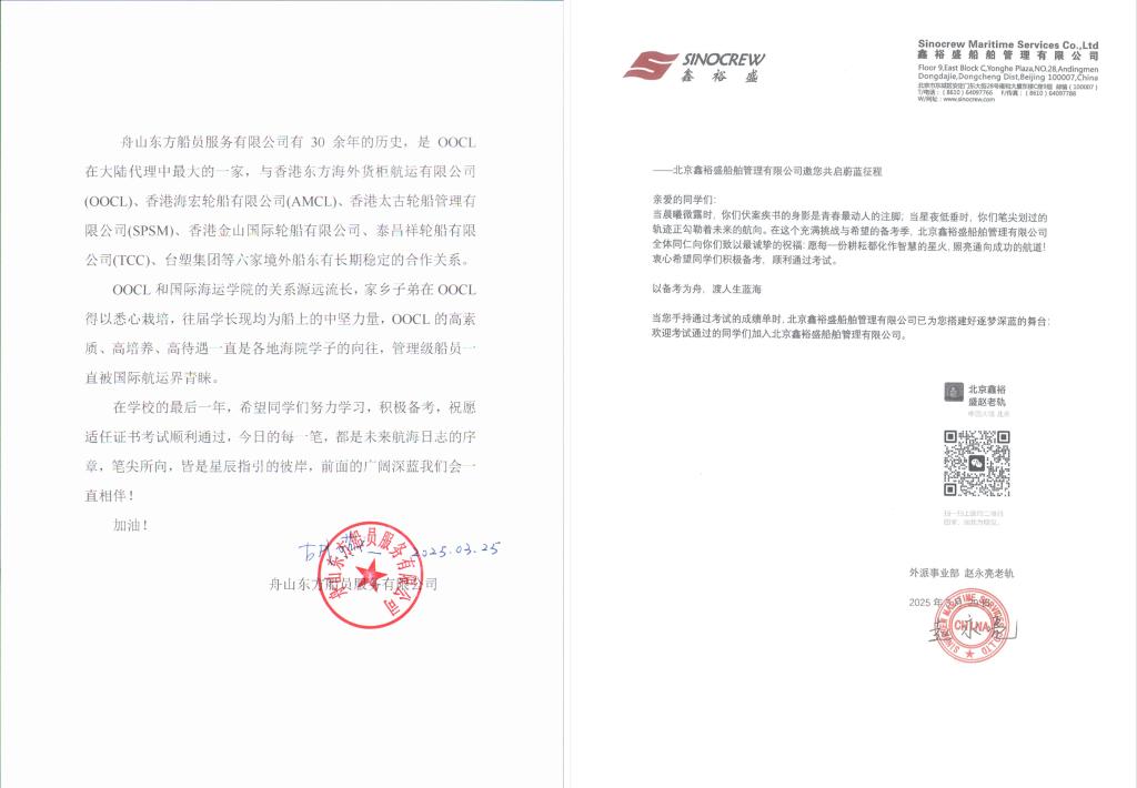 会上设置了教学安排政策解读、团队考证规划介绍、企业寄望与学长勉励、院长总结等四个环节。与往届相比,本次会议特别增设“企业寄望与学长勉励”环节,舟山东方船员服务有限公司、北京鑫裕盛船舶管理有限公司、浙江新一海海运有限公司等业内知名企业代表,纷纷鼓励学生要沉下心来刻苦学习、认真备考,衷心预祝学生们顺利通过考证,凭借努力为自己搏出一片美好未来。优秀校友刘晴也通过视频送上考证建议与祝福。
