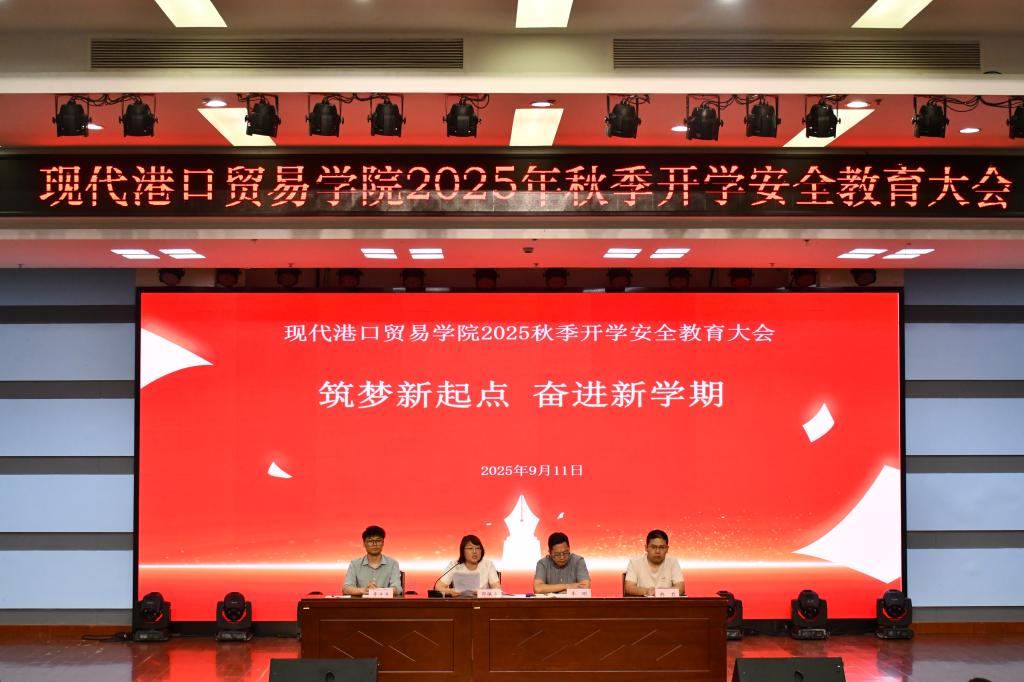 9月11日晚,现代港口贸易学院在图书馆四楼报告厅召开2025年秋季开学安全教育大会。学院党总支书记李刚、教学主管韩君、分团委书记李沛沛、全体辅导员及2024级在校生参加,会议由学院副书记邵佩华主持。