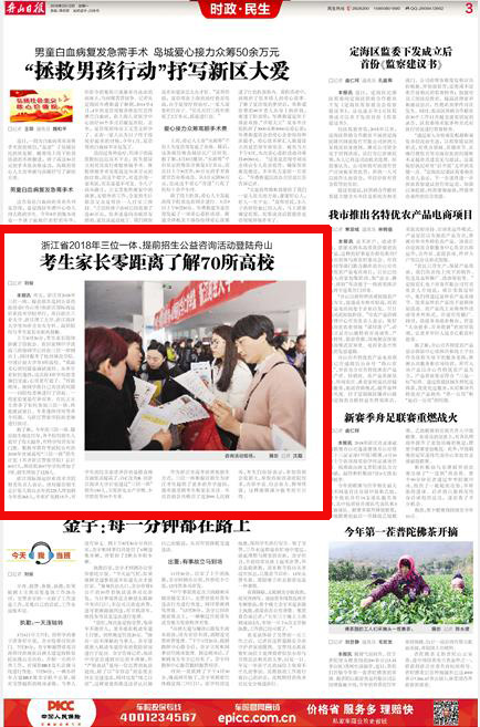 浙江省2018年三位一体、提前招生公益咨询活动登陆舟山