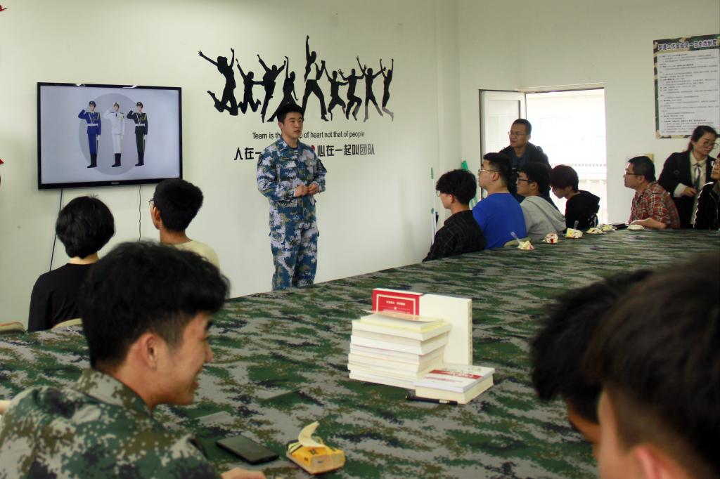 海军退役大学生顾力源为大家讲述“海军节”的由来、海军的军史和自己在部队服役时的亲身经历,并结合党史学习教育和国家征兵政策等内容,当起了“征兵宣传员”,让在场聆听宣讲的同学们产生了对军营的无限遐想,也进一步坚定了报效祖国的信念。