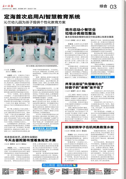 《舟山晚报》:浙海职院学子在杭州勇救落水者