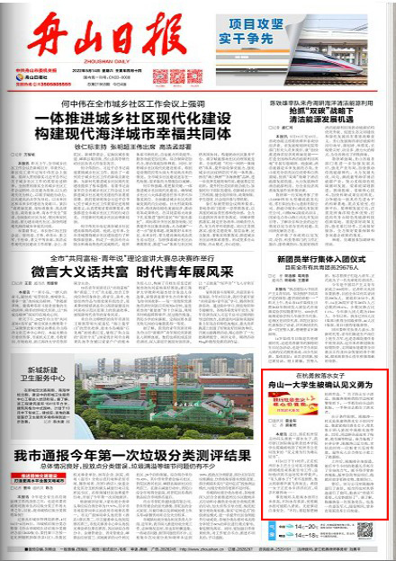5月6日下午1时许,正在杭州市水上巴士公司实习的陈瀚涛刚刚结束客流引导工作,这时他听到不远处传来呼救声:“有人落水了!”来不及细想,他立刻朝着声源飞奔而去,看到一女子正在水中浮浮沉沉,双手不断挥动......