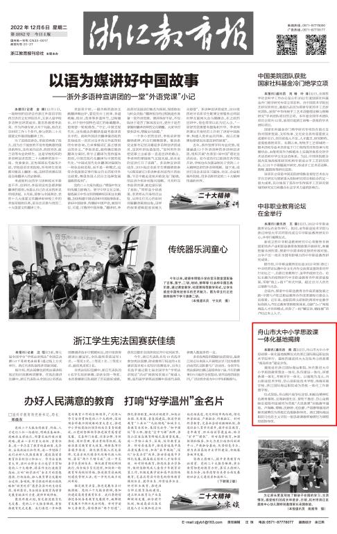 2022126日《浙江教育报》头版 http://www.zjjyb.cn/html/2022-12/06/content_39865.htm