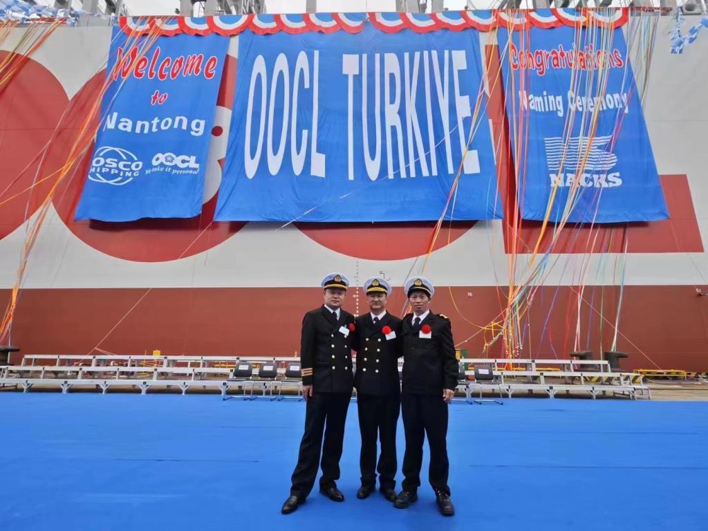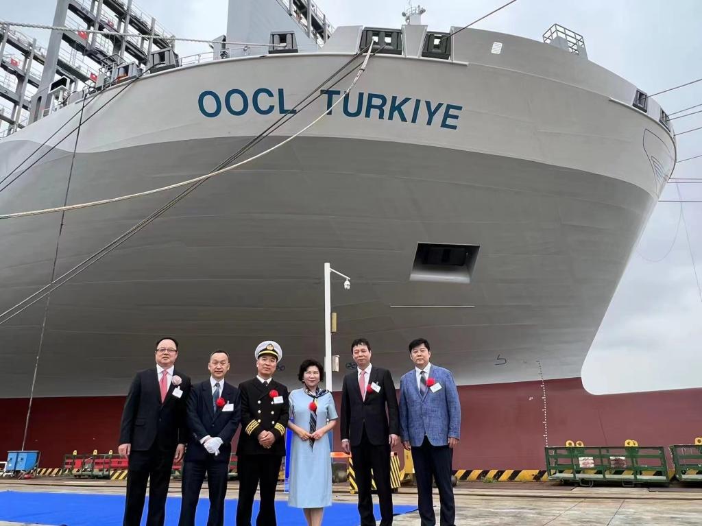 东方海外货柜航运有限公司(“东方海外”)欣然宣布,其船队将再增添一艘全新超大型货轮。日前,这艘新船在南通中远海运川崎船舶工程有限公司(“南通中远海运川崎”)船厂举行的命名仪式上被命名为“东方土耳其(OOCL Turkiye)”号,成为东方海外同系列十二艘货轮中接收的第三艘24,188TEU船舶。