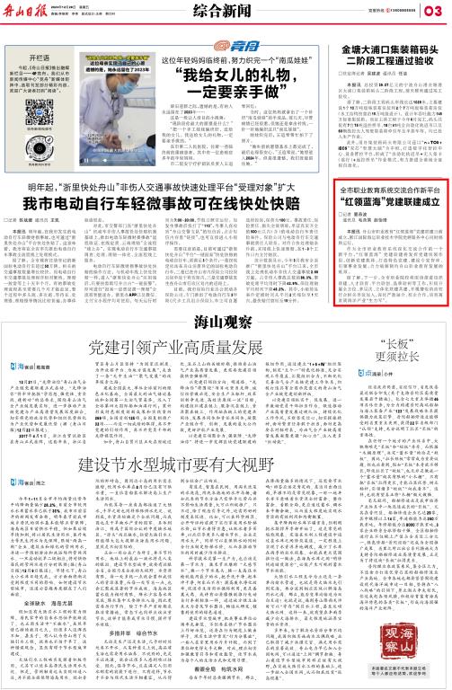 (2023年12月29日《舟山日报》第3版 https://epaper.zhoushan.cn/html/2023-12/29/content_145342_185976.htm)