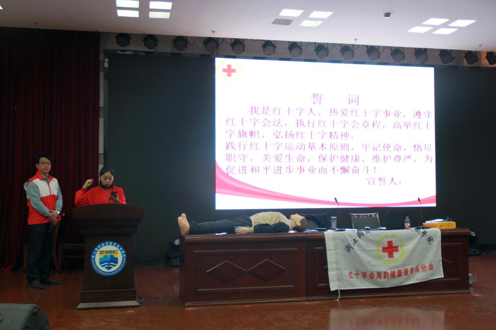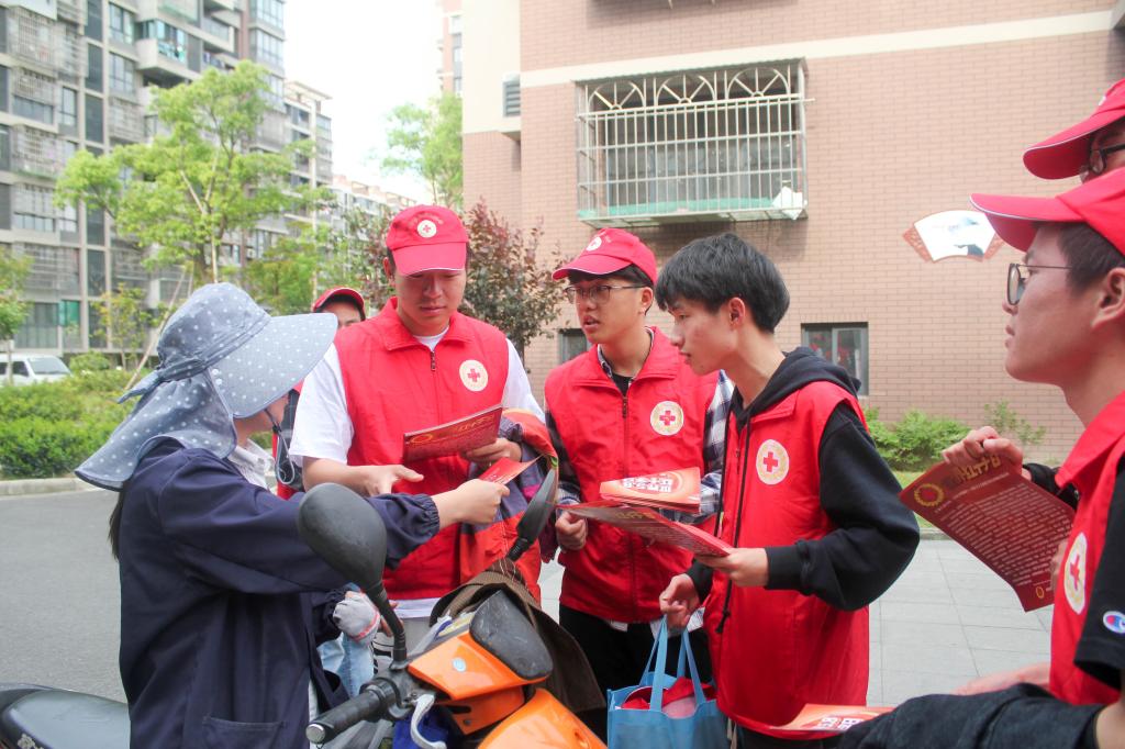 5月8日“世界红十字日”当天,学院红十字分会的100名会员参加了学校组织的“心肺复苏及AED使用”急救知识讲座。“青春热血共创文明城市,暖暖温情守护新区老人”志愿服务队成员更是自制宣传单,来到日常服务的社区,向老人们和其他市民宣传“世界红十字日”相关知识,发放“市红十字会创建全国文明城市倡议书”。