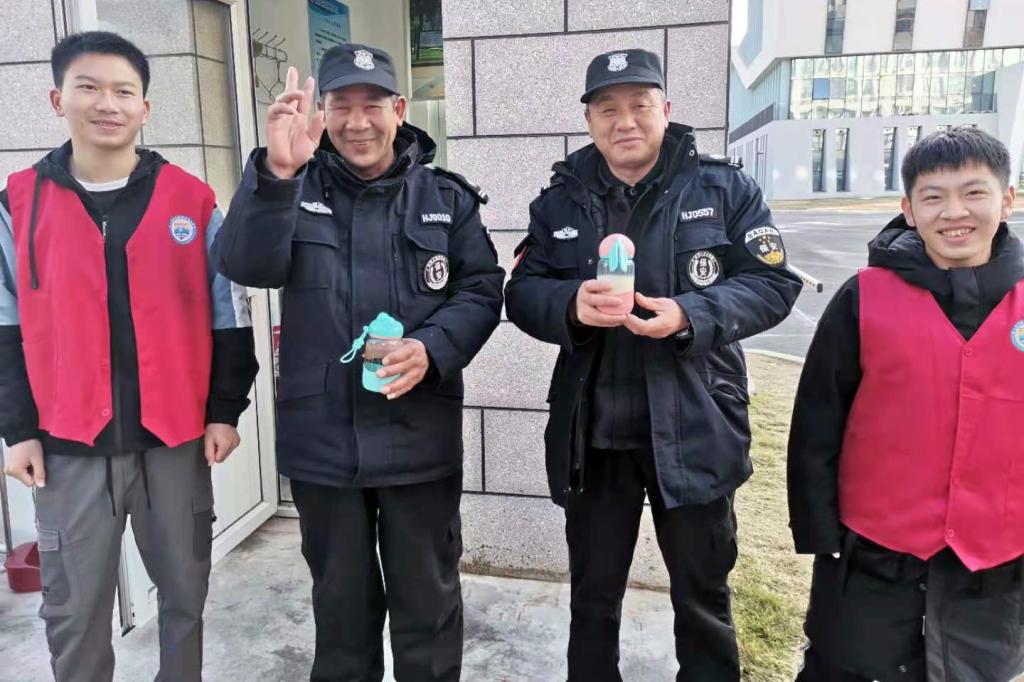 近日,港口管理学院的学生志愿者自发准备了热水、热豆浆,为后勤保障人员们驱寒暖心。志愿者们给每天在学校辛勤劳动的环卫工人、门卫保安以及和同学们朝夕相处的宿管叔叔阿姨们,送上了一份简单却温暖的爱心。