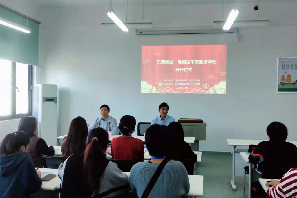 10月26日上午,由舟山市商务局和舟山市妇联联合主办,我校港口管理学院承办的“东海渔嫂”电商基本技能专项培训班,在社会服务中心303教室顺利举行开班仪式。港口管理学院院长王贵斌、“东海渔嫂”电商培训专班负责人周剑敏出席开班仪式。开班仪式由周剑敏主持。