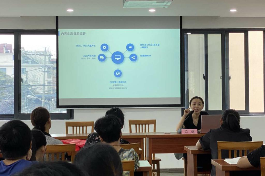 培训课上,吴蓓、郑堃老师从品牌认知、职业素养和网络平台规则到直播设备的准备与操作、直播实操技巧、直播形象打造等方面进行了形象生动的讲解,帮助学员快速学习掌握网络直播技能。