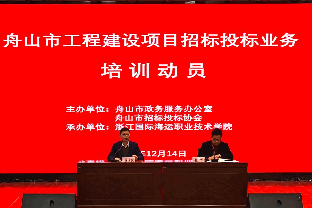 12月14日,由舟山市招标投标协会和舟山市政务服务办公室主办,我校现代港口贸易学院承办的舟山市工程建设项目招标投标业务培训班在学校图书馆四楼报告厅举行。来自全市招投标协会会员单位、施工企业、招标代理机构负责人及业务骨干,相关行业管理部门共300余名学员参加了此次培训。